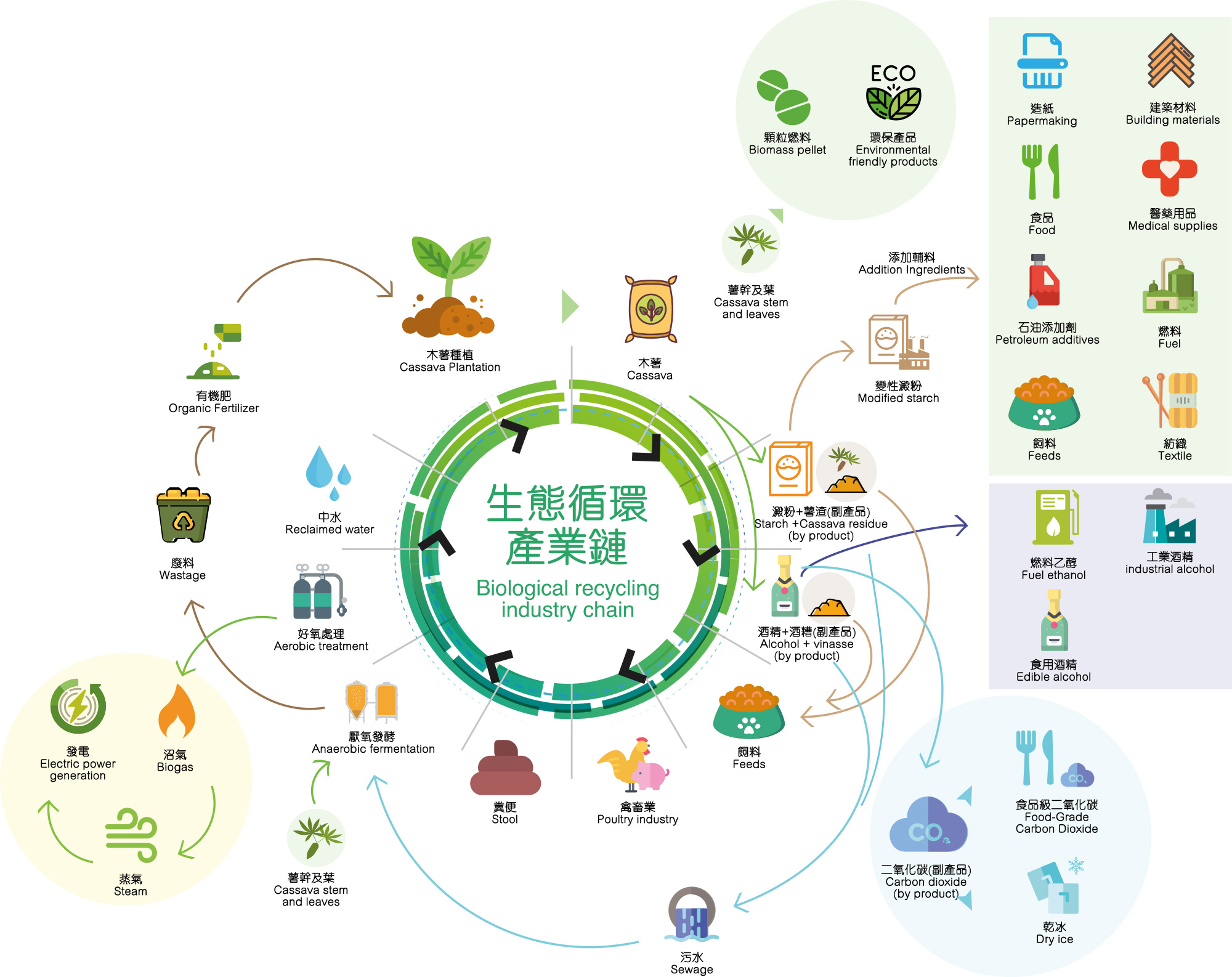 Pati adalah salah satu zat yang paling melimpah di alam, dan merupakan sumber daya terbarukan dan hampir tak terbatas. Tepung tapioka terutama diproduksi oleh basah singkong singkong segar, tetapi pati singkong juga dapat diproduksi dari keripik singkong kering. Tepung tapioka digunakan untuk menghasilkan berbagai produk, seperti makanan, kertas, tekstil, perekat, minuman, gula-gula, obat-obatan dan bahan bangunan.